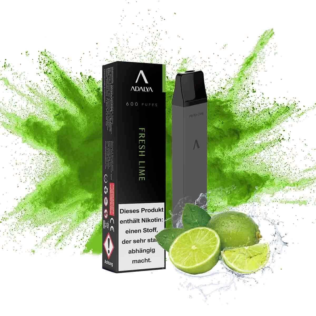 Adalya hat mit Sorten wie Love 66, The Two Apples oder Lady Killer den deutschen Shisha Markt erobert und bringt nun auch seine beliebtesten Geschmäcker als Einweg Vape. Die Adalya E-Shishas überzeugen nicht nur durch ihren Geschmack, sondern auch durch ihr einzigartiges Aussehen. Sie sind flach und rollen nicht vom Tisch, lassen sich aber trotzdem in einer Hosentasche verstauen. Alle Vapes sind in einem sehr dezenten mattem schwarz gehalten und tragen das Adalya Logo samt der jeweiligen Sortenbezeichnung. Die Adalya Vape ist eine praktische Einweg Vape, die nach vollständiger Entleerung des Tanks einfach komplett entsorgt werden kann. Dank Zugautomatik ist ein denkbar einfaches Handling und purer Dampfspaß garantiert. Auch auf weitere Einstellmöglichkeiten wird bei der Adalya Vape verzichtet. Die interne Batterie mit einer Kapazität von 400 mAh ermöglicht bis zu 600 Züge. Die Adalya Vape verfügt über einen integrierten 2 ml Pod der ein Dampferlebnis der besonderen Art ermöglicht. Sie kommt in vielen unterschiedlichen, köstlichen Geschmacksrichtungen und ist jeweils mit 12mg/ml Nikotin angereichert.