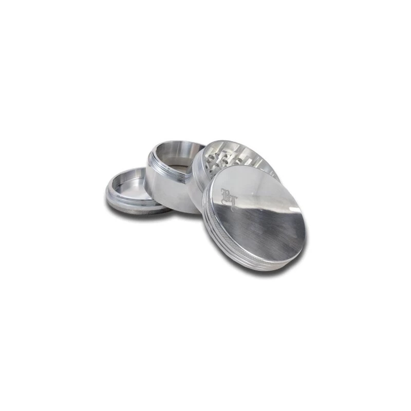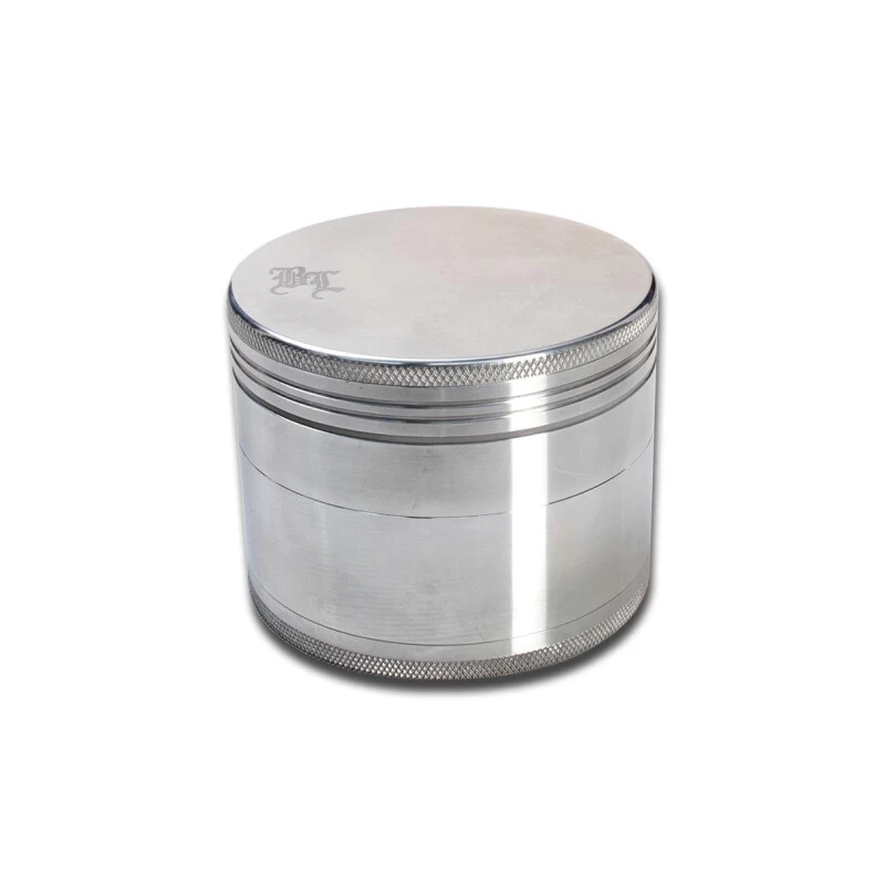 Der Grinder ist besonders griffig! Durch den geriffelten Rand lässt sich diese MĂĽhle besonders schnell und sicher drehen. 3-teiliger Cruncher mit eingebautem Fein-Sieb, Siebkammer/Vorratskammer fein gemahlene Kräuter, Bodenkammer/Vorratskammer fĂĽr besonders Feines, Kunststoff-Schaber fĂĽr die restlose Verarbeitung edelster Kräuter. Mit 90 mm Durchmesser ist dieser Grinder um ein vielfaches voluminöser als die ĂĽblichen Standard-Grinder! Material: Aluminium, CNC-gefräst – Farbe: silber