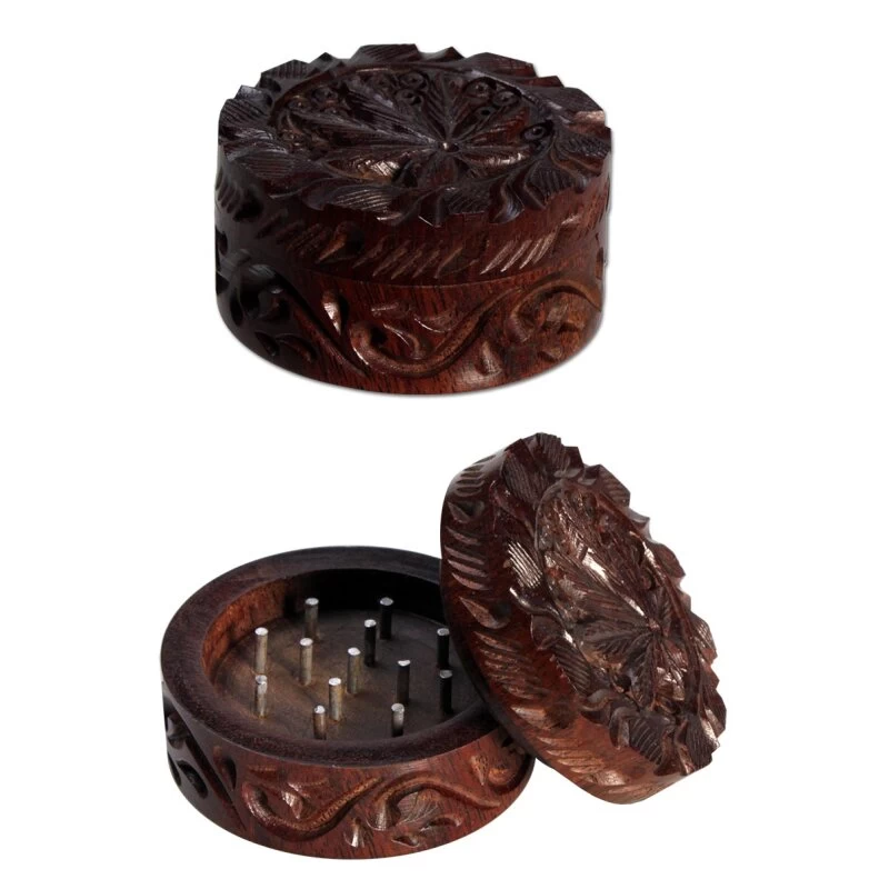 Der Holz-Grinder ist sorgfältig beschnitzt und sehr passgenau gearbeitet.