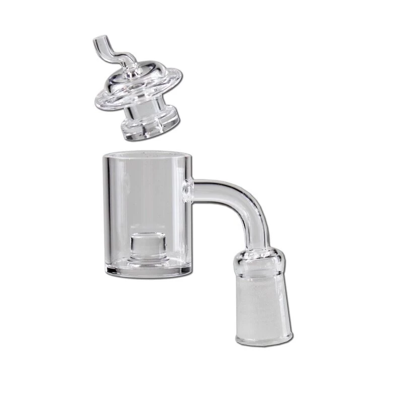 Bong-discount Öl-Bong-Zubehör Für OiL-Rig: Öl-Kopf, Banger Zum Verdampfen Von Öl, Steckkopf | 70 X 26 Mm, NS 19F (female 18,8 Mm), Ansatz: 90° | BOROSILIKATGLAS, Klar | Mit Carb-Cap (Rauchfänger)