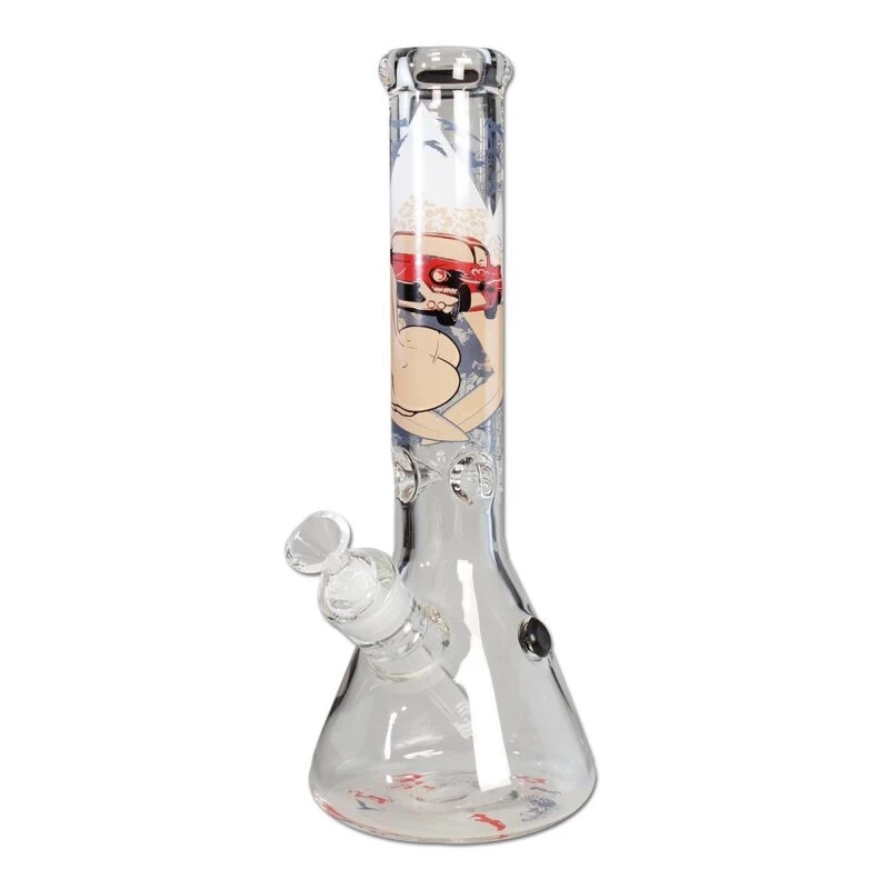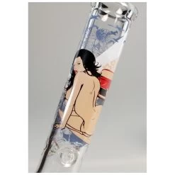 Die Motive wiederholen sich auf dem Boden der Bong. Mittlere, besonders angenehme Größe.