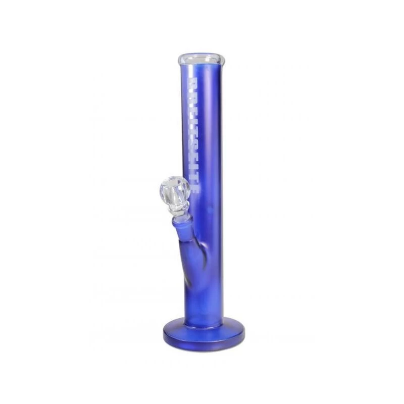 Diese mittelgroße Bong ist mit soliden 4 mm Wandstärke angenehm schwer und stabil. Knallige Faben, ohne Schnörkel.