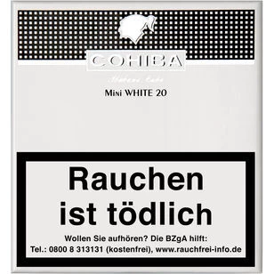 Cohiba White Mini von Imperial Brands sind aus einer neuen Mischunung hochwertiger kubanischer Tabake hergestellt und sorgen für einen milden würzigen Geschmack mit leicht erdiger Note. Das leichte und cremig weiche Aroma bietet eine angenehme Milde. Cohiba Mini ist mit ihren 8cm für ein prägnantes Rauchvergnügen gedacht und ideal für Einsteiger geeignet. Nicht zuletzt auch ihre elegante Aufmachung im minimalistischen Design, in silber-schwarz-weiß gehalten, zeigt die Cohiba White Mini Stil und Klasse.