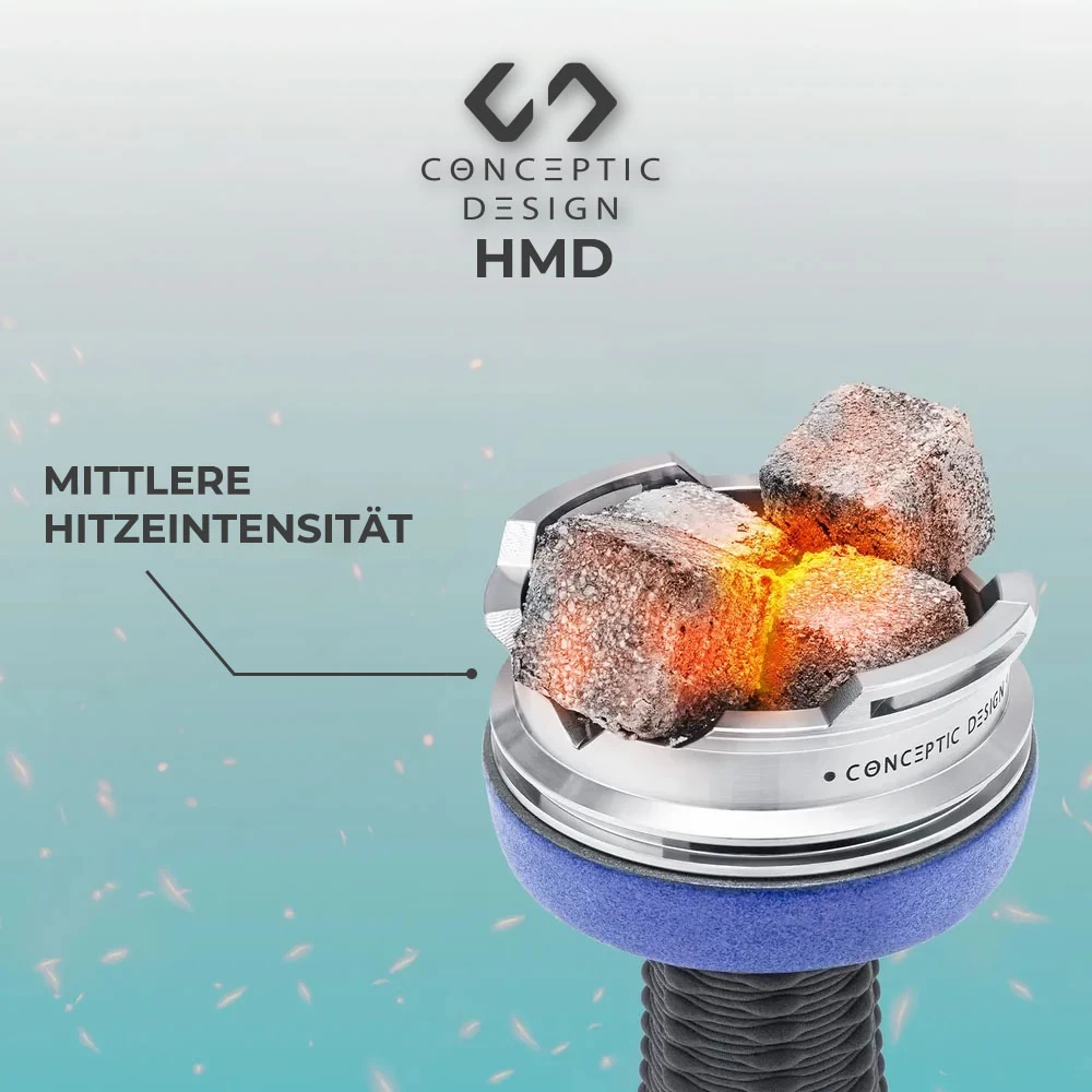 Dieser HMD kommt aus dem Russischen Hause Conceptic Design und verspricht das perfekte Handling der Hitze mit Edelstahl. Aufgrund seines ausgefallenen Designs ist es möglich diesen HMD mit vier Kohlen in drei verschiedenen Setups zu nutzen, um drei verschiedene Hitzestärken zu ermöglichen. Dieses Prinzip ist relativ neu in der Szene und Conceptic Design ist der erste Hersteller, der dies anwendbar für den Endverbraucher umsetzen konnte.