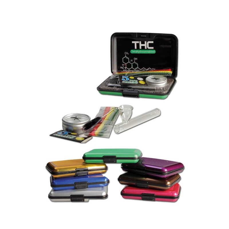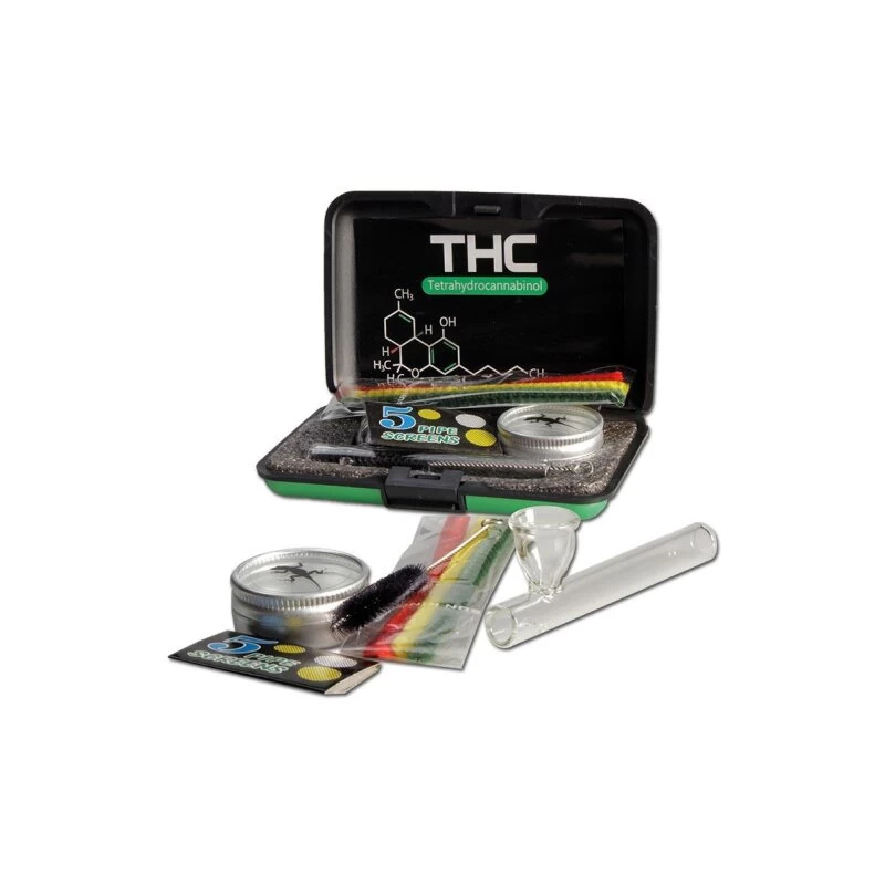 Handpfeife, Pur-Pfeife ‚Etui-Set ‚THC-Molecule‘ Mit Kawumm, Reinigungs-BĂĽrste, Pfeifenreinigern, Pfeifensieben, Vorratsdose‘