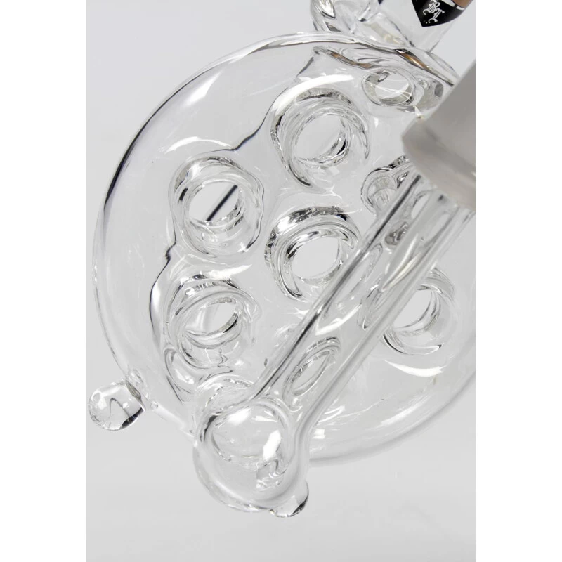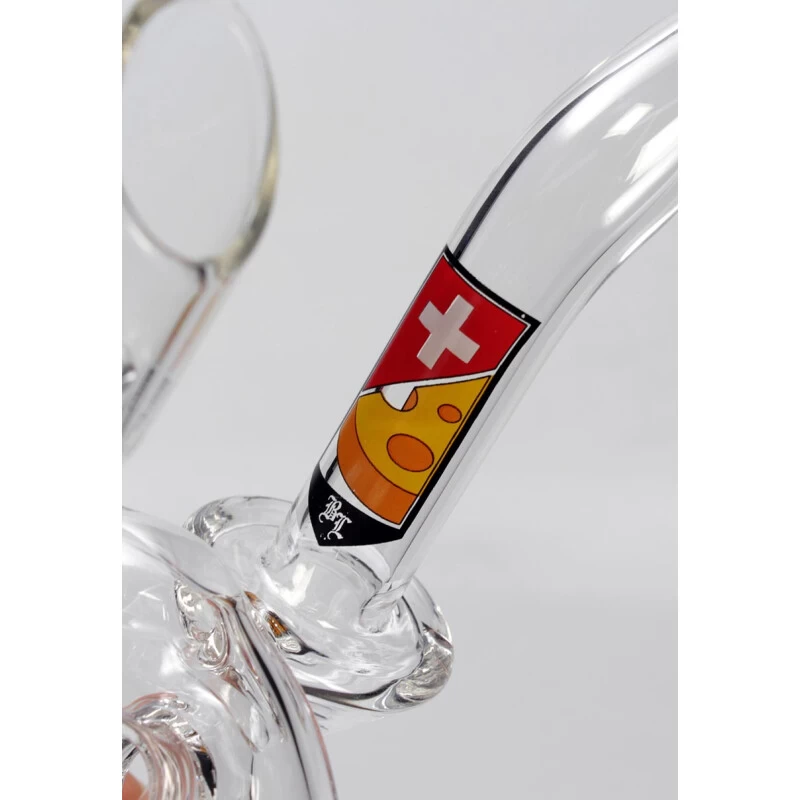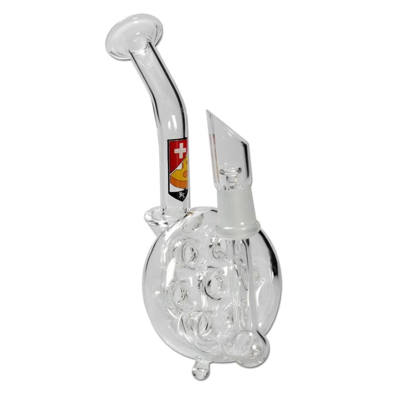 Die Löcher im Käse machen den Geschmack. Diese Swiss Cheese Percolatorbong ist speziell für die Verdampfung von Öl konzipiert. Lieferumfang: Oil-Rig mir Standfüßen, Öl-Nagel, Spritzschutz