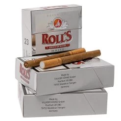 Rolls Exclusive White Shortfiller von Villiger Söhne GmbH & Co, ein Zigarillo aus einer American Blend entrippter Tabakmischung und einem durch Deck- und Umblatt umhülltem Filter. Ein leichter und bekömmlicher Rauchgenuss bei mittlerer Stärke und vollem Tabakgeschmack. Für Raucher, die es lieber etwas weicher und milder bevorzugen und das zu einem guten Preis- Leistungsverhältnis.