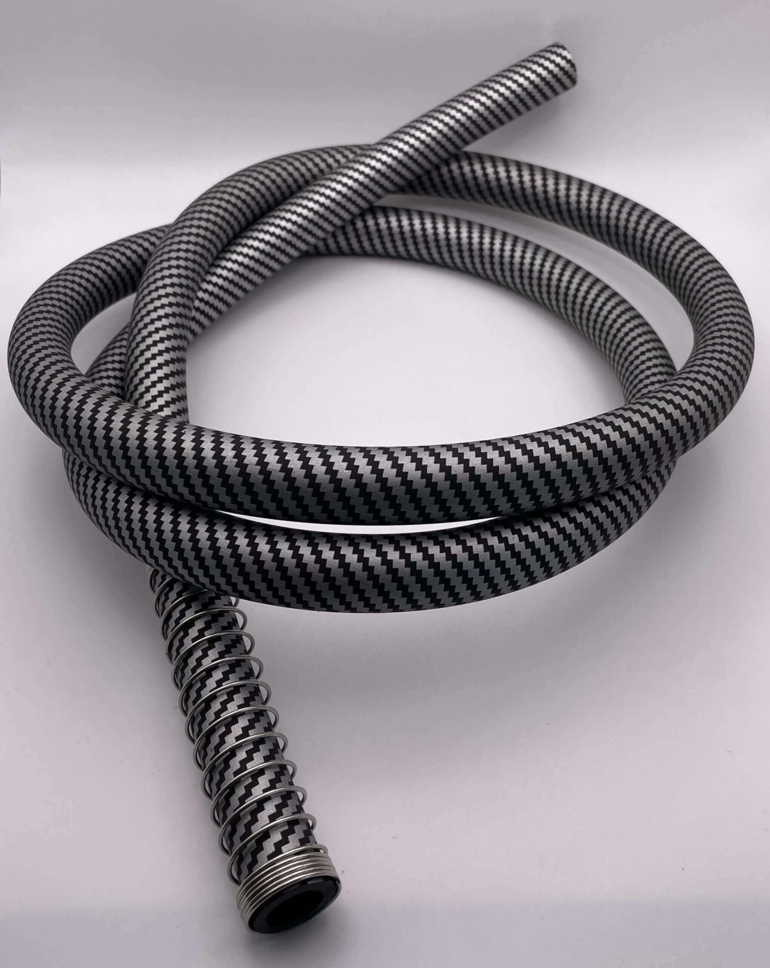 Hochwertiger Softtouch Silikonschlauch in grauer Carbonoptik. Dank der matten Oberfläche ist dieser Schlauch Kinderleicht zu reinigen! Die beigefügte Schlauchfeder verhindert zudem das Abknicken des Schlauchs.