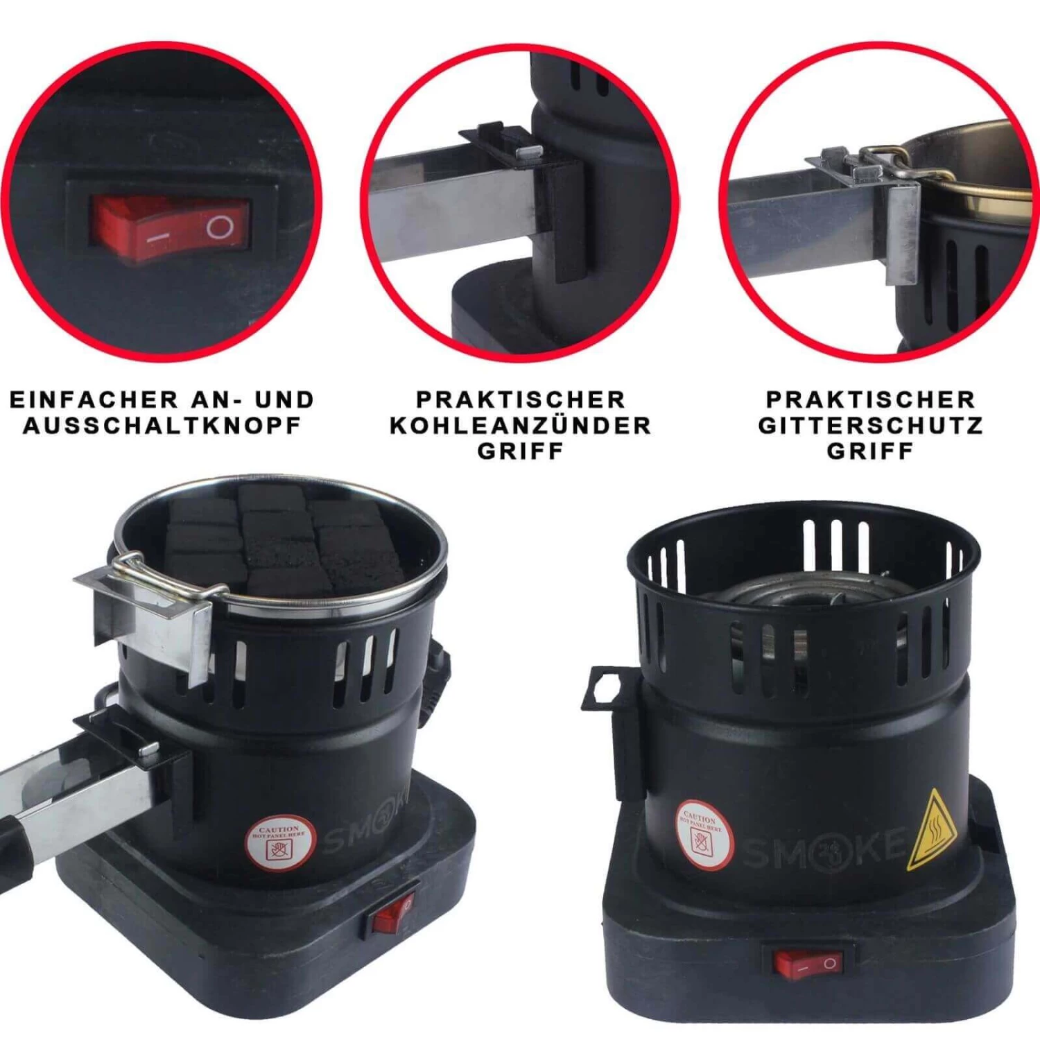 Achtung: Jeder Kohleanzünder ist ein Gebrauchsgegenstand, der sich je nach Beanspruchung abnutzt. Das bedeutet, dass sich speziell die Heizspirale bei starker Nutzung schneller abnutzt. Als Verschleißgegenstand unterliegt der Artikel nicht der gesetzlichen Gewährleistung.