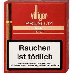 Villiger Premium Red Filter Shortfiller aus dem Hause Villiger Söhne GmbH, hergestellt aus einer hochwertigen Burley, Virginia Tabakmischung, mit einem doppelten Deckblatt aus Ecuador veredelt und angereichert mit einem feinen Vanille Aroma, lassen dieses Zigarillo zu einem einzigartigen Geschmackserlebnis werden. Der angenehme und milde Geschmack nach Vanille machen dieses Zigarillo zu einem Hochgenuss.