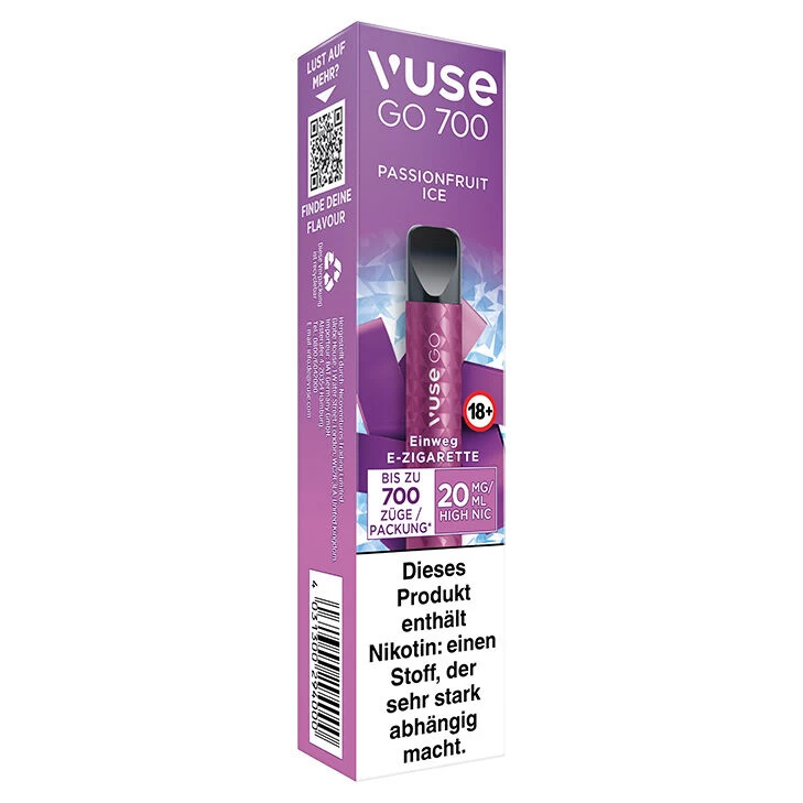 Erlebe ein intensives Geschmackserlebnis süßer Passionsfrucht mit der VUSE GO 700 PASSIONFRUIT ICE und belebe deine Sinne mit einem kühlenden Twist. Egal ob für zu Hause oder unterwegs – mit dem optimierten Design ist sie der ideale Begleiter. Mit zuverlässiger Akkuleistung bietet dir diese Einweg E-Zigarette ganze 700 Züge tropischen Dampfens.