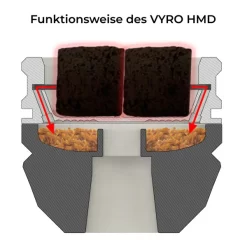 Der VYRO HMD überzeugt durch seine Fähigkeit, die Hitze gleichmäßig zu verteilen und langfristig zu speichern, was zu einem intensiven und gleichmäßigen Geschmack führt. Die passive Belüftung des HMDs reduziert CO-Kontaminationen, sodass du den puren Tabakgeschmack genießen kannst. Dank des optimierten Depots wird die Belüftung der Kohle verbessert, was die Rauchdauer verlängert.